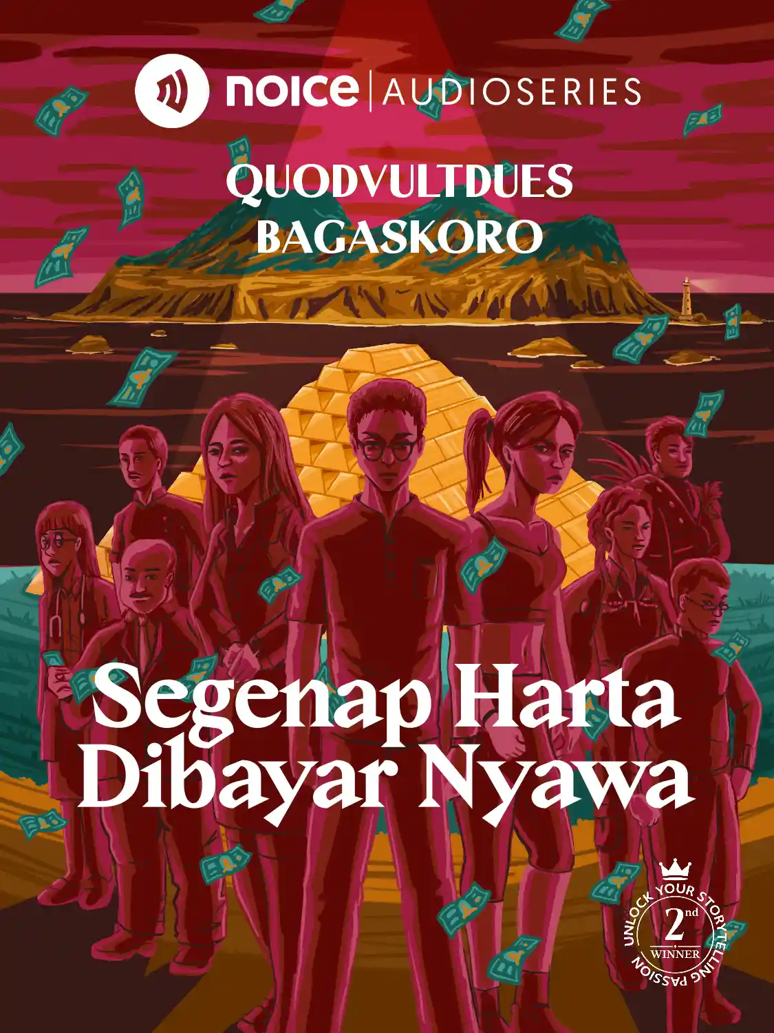 Melalui surat wasiatnya, Hadi Burtono, seorang konglomerat kota mengundang 9 orang yang memiliki popularitas dan kekuasaan untuk memperebutkan 100 kg emas di Pulau Tarok. Selama lima hari mereka berada di sana, misi pemecahan teka-teki tidak berjalan sesuai rencana. Satu persatu, para undangan mati mengenaskan! Ada yang bilang, siluman Tarok pelakunya. Apakah itu benar? Lantas.. Bukannya lebih baik mereka segera pergi dari sana? Namun.. Bagaimana dengan harta karun emasnya? Pilihan mereka hanya dua. Jadi kaya, atau bayar nyawa.Diadaptasi dari novel "Diamnya Karang dan Ombak", kolaborasi NOICE dan KaryaKarsa.Pakai headphone/headset kamu, dan rasakan pengalaman immersive audio yang lebih seru!