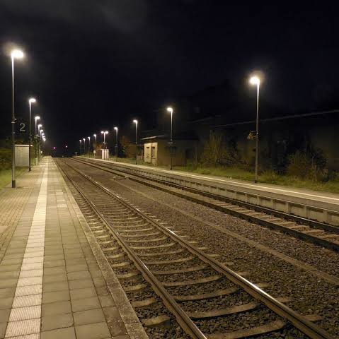Wanita duduk tengah Malam di Rel Kereta