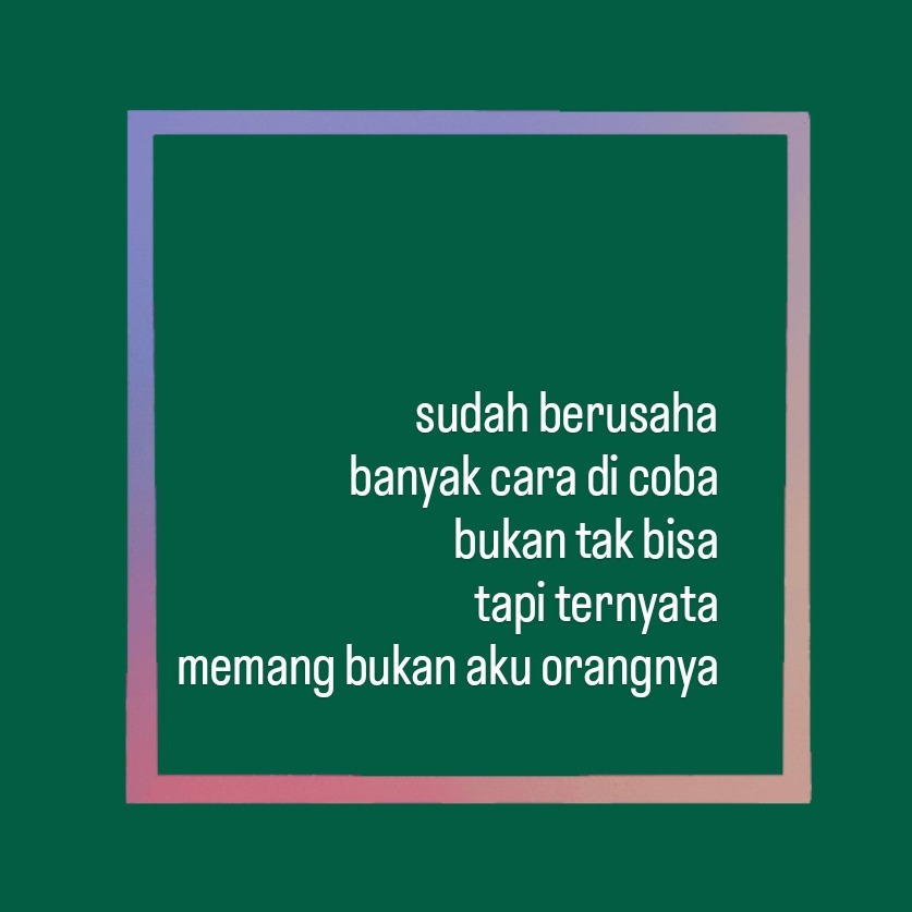 Haii! sosoknya ada, tapi jiwanya bukan untuk kita bagaimana jika semua usaha kita terbuang sia sia? ternyata jawabannya cuma bukan aku orangnya