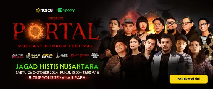 PORTAL [Podcast Horror Festival] sebuah kolaborasi antara Noice dan Spotify yang akan membawa kamu ke dalam petualangan Jagad Mistis Nusantara dan pengalaman paling #BikinMerinding.